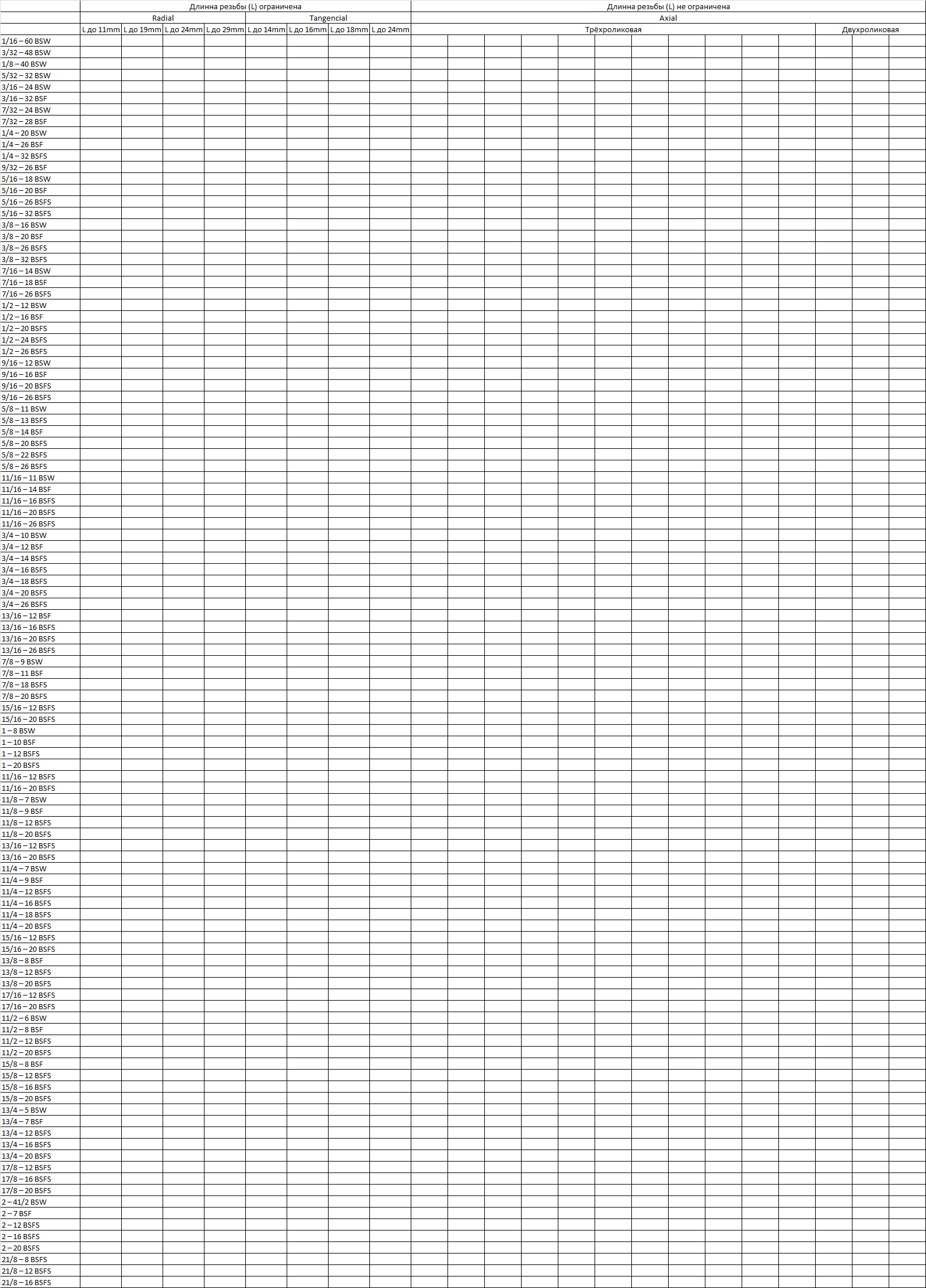 Дюймовые резьбы