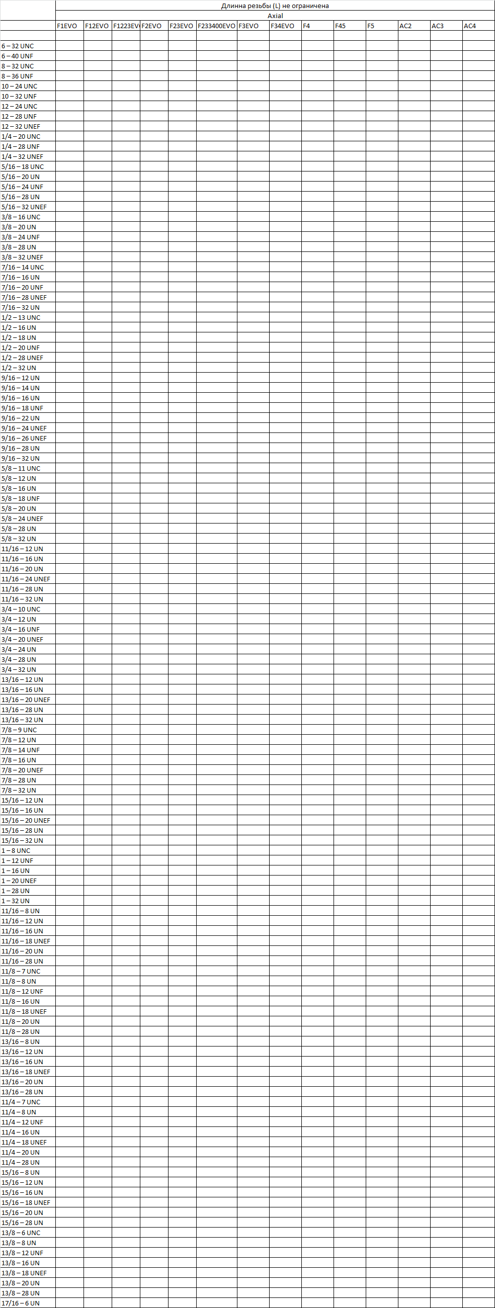 (UN, UNC, UNF, UNEF) Дюймовая